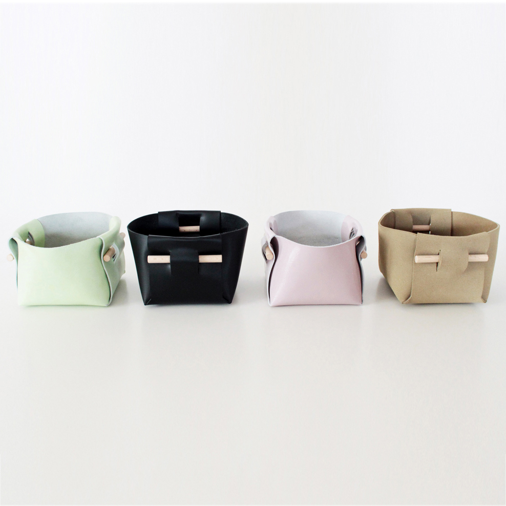 Le cuir est un matériau naturel et brut, à manipuler avec des mains propres et sèches pour éviter les tâches de graisse. Les corbeilles sont fabriquées à partir de chutes de cuir provenant d’entreprises de maroquinerie et de chaussures.