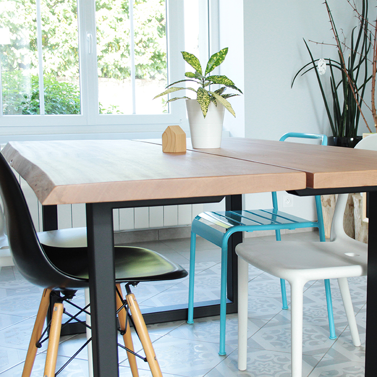 Nous avons dernièrement dessiné et réalisé à l’atelier une table sur-mesure en sapelli et métal aux finitions live edge.